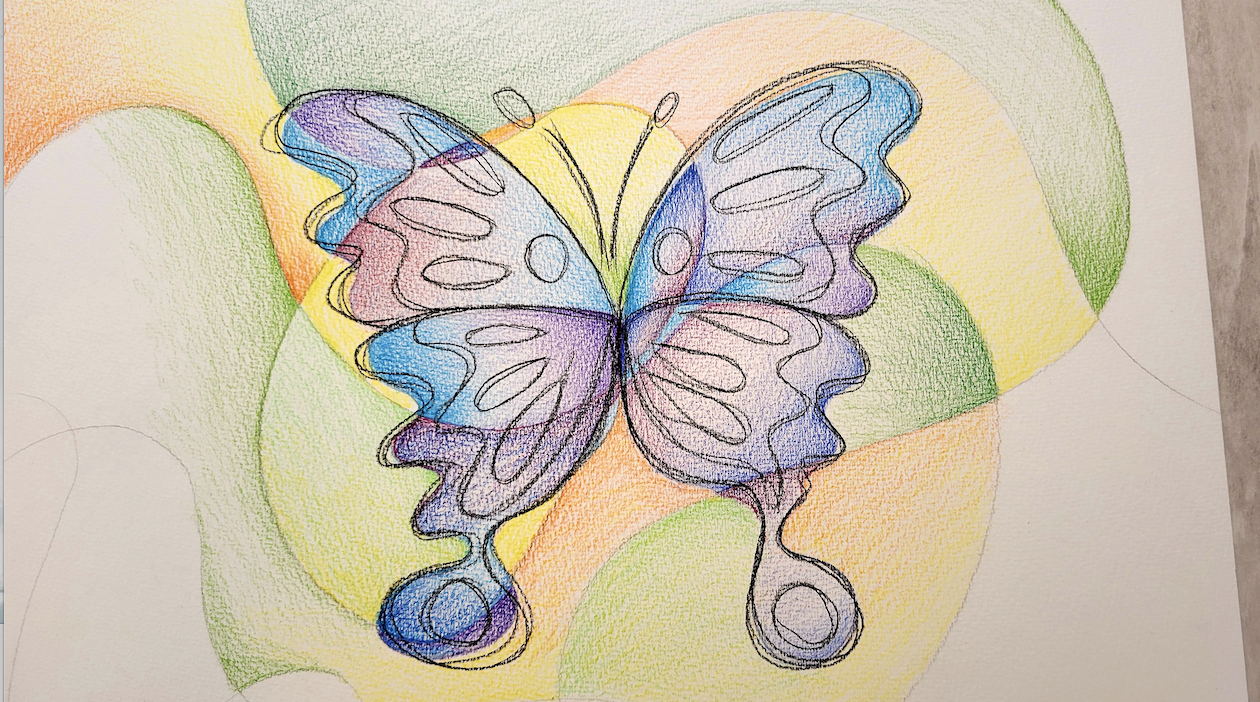 Participants will learn how to create a unique, personal and colourful fluid drawing using colouring pencils. Claudia will teach them how to blend and combine colours while talking about colour theory and the meaning of colour. Since each design will be unique to each participant, Claudia will guide them through the decision making so they feel confident and proud of their own creation.